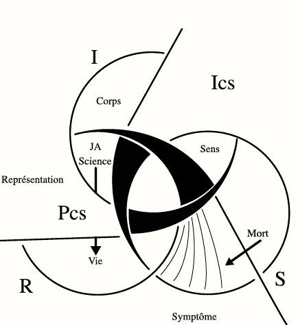 C’est qu’incontestablement de la vie, après ce terme vague qui consiste à énoncer le jouir de la vie, la vie nous ne savons rien d’autre et tout ce à quoi nous induit la science, c’est de voir qu’il n’y a rien de plus réel, ce qui veut dire rien de plus impossible, que d’imaginer comment a pu faire son départ cette construction chimique qui, d’éléments répartis dans quoi que ce soit et de quelque façon que nous voulions le qualifier par les lois de la science, se serait mis tout d’un coup à construire une molécule d’ADN, c’est-à-dire quelque chose dont je vous fais remarquer que très curieusement, c’est bien là qu’on voit déjà la première image d’un noeud, et que s’il y a quelque chose qui devrait nous frapper, c’est qu’on ait mis si tard à s’apercevoir que quelque chose dans le réel - et pas rien, la vie même - se structure d’un noeud.
